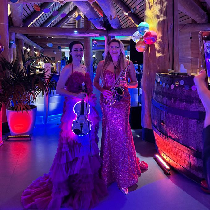Tienen una alineación versátil como dúo, trío, cuarteto o conjunto completo para actuar como grupo de cuerdas o con tambores en vivo, para adaptarse a cualquier evento.
