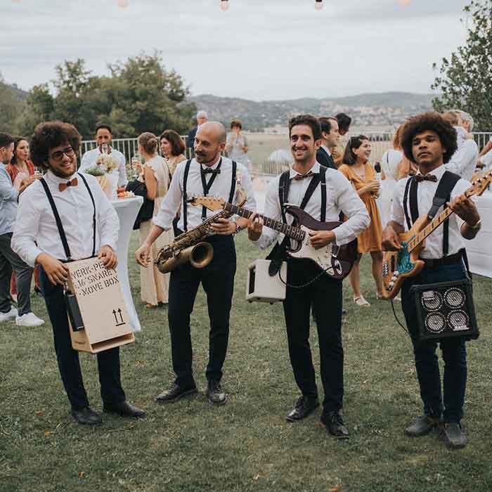 Con sede en Francia y disponible para actuar en eventos como bodas, celebraciones corporativas y privadas, fiestas, cenas de gala y más en todo el mundo.