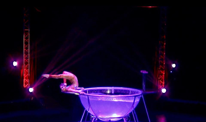 Artista de circo multi-talentosa combina sus habilidades variadas en este impresionante espectáculo