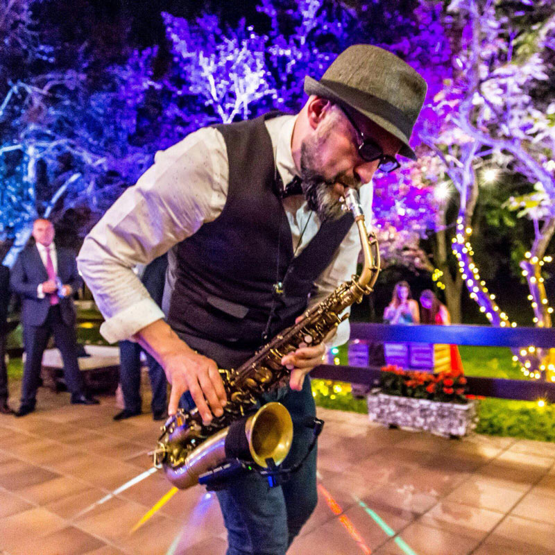 Aumentando la energía y el ambiente de fiesta, nuestro saxofonista en vivo y violinista eléctrico tocan música en vivo melodiosa junto con las pistas de un DJ. Realizando un espectáculo vibrante y dinámico, nuestro DJ y músicos en vivo no solo ofrecen un sonido fantástico, sino que también crean un espectáculo visual imponente.