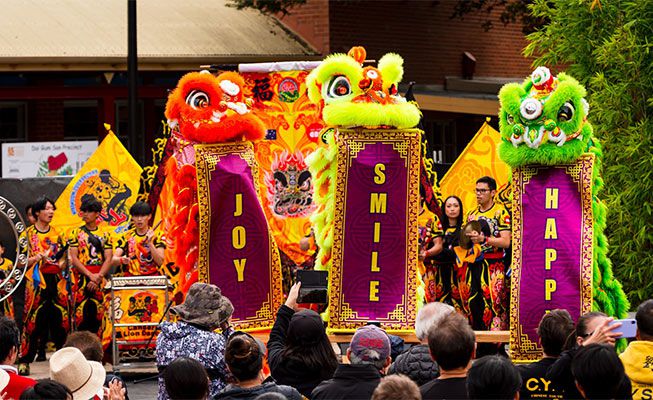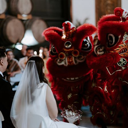 Ameniza tu evento con la llamativa representación de leones y dragones. Adapta la experiencia a cualquier evento para disfrutar de espectáculos visualmente impresionantes.
