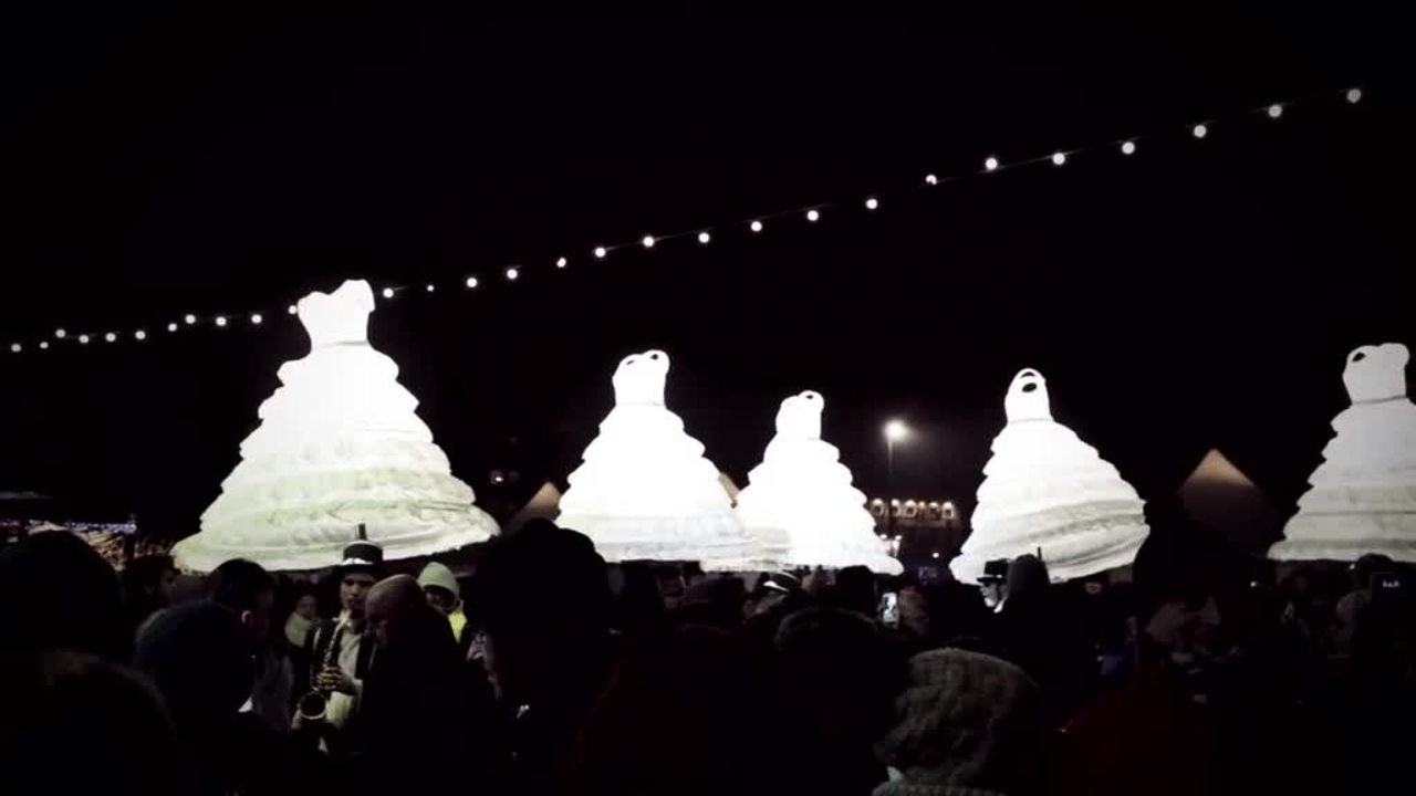 Narrando una historia de amor, este desfile itinerante está diseñado en torno al tema del matrimonio. Con novios elegantemente vestidos llevando vestidos de novia brillantemente iluminados en sus cabezas y novias luminosas y resplandecientes, nuestra procesión de bodas no se parece a ninguna otra que encuentre. Incorporando una banda completa de músicos ambulantes que tocan instrumentos de viento metal y percusión, las multitudes se detendrán y mirarán mientras nuestro desfile pasa.