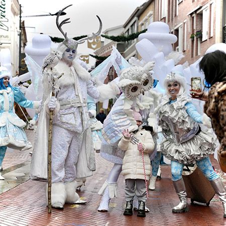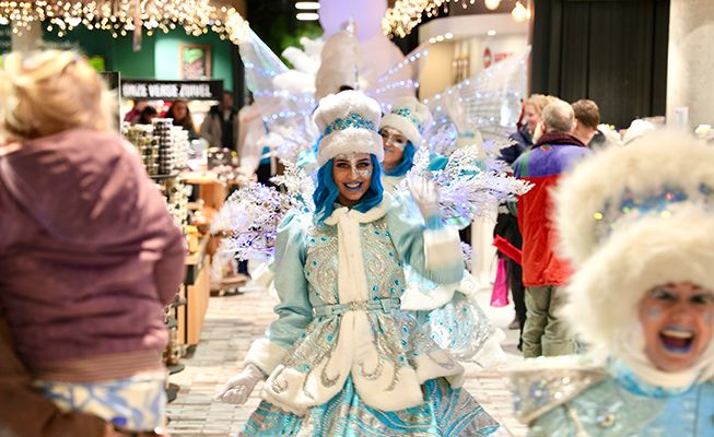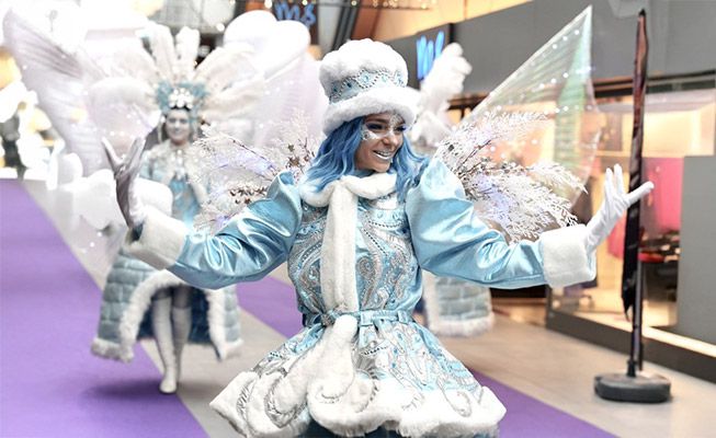Los personajes ambulantes interactúan con los visitantes, lo que lo convierte en el entretenimiento ideal para fiestas de invierno en centros comerciales y espacios urbanos.