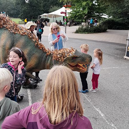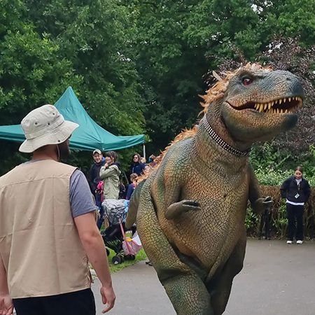 Con años de experiencia en marionetas, el dinosaurio de nuestro equipo ofrece la experiencia de dinosaurio más realista que hará disfrutar a todos