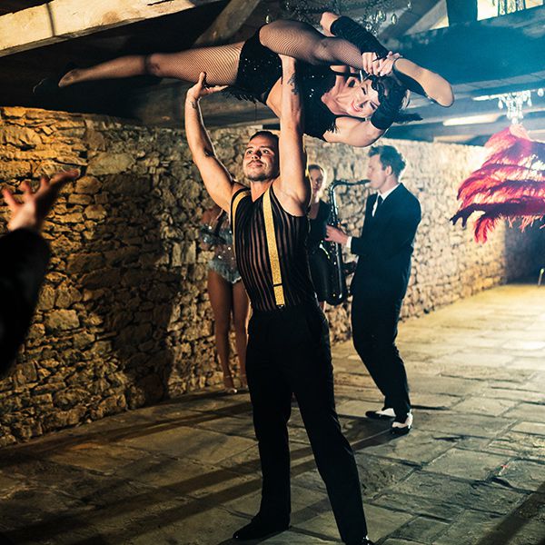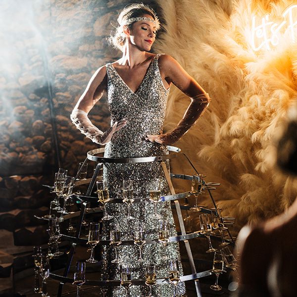 Disponible como dúo o con otros espectáculos de temática Gatsby de los años 20, como vestidos de champán, acróbatas, actuaciones personalizadas y mucho más