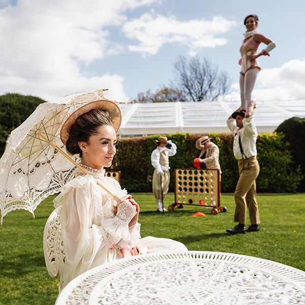 No importa dónde se celebre tu evento, nuestro dúo de acróbatas con temática de la Regencia está disponible para llevar su encanto y talento a tu evento