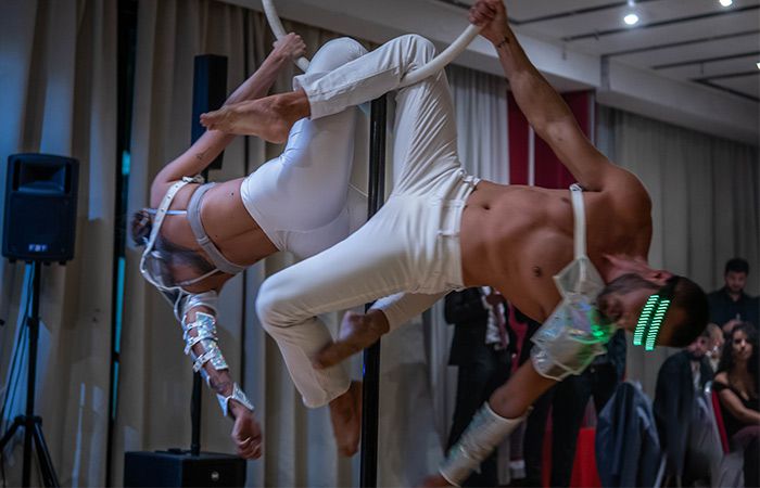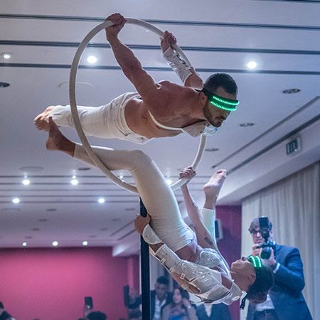Aportando una sensación moderna y contemporánea a la elegante arte aéreo, nuestro dúo LED impresionará a sus invitados con sus contorsiones y acrobacias.