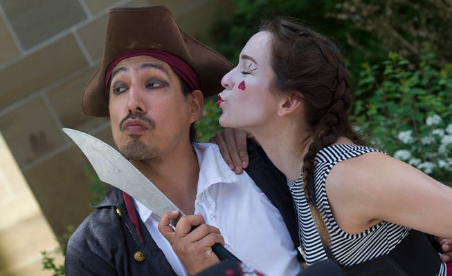 Ofrecen dos espectáculos totalmente coreografiados, uno de amor y otro de piratas, en los que fusionan su arte circense con una atractiva narración