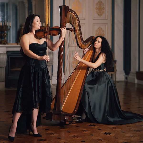 Disfruta de los majestuosos sonidos de un dúo de arpa y violín que interpreta música clásica y canciones modernas