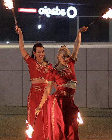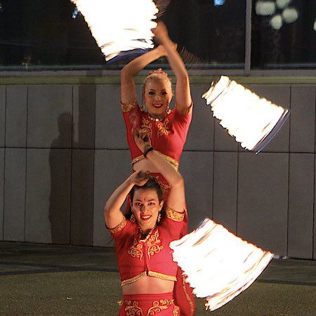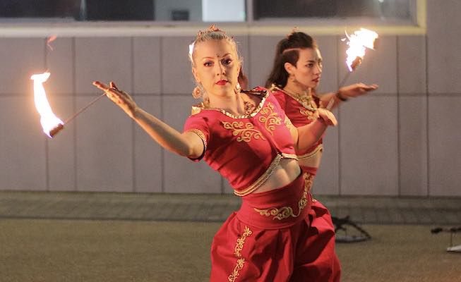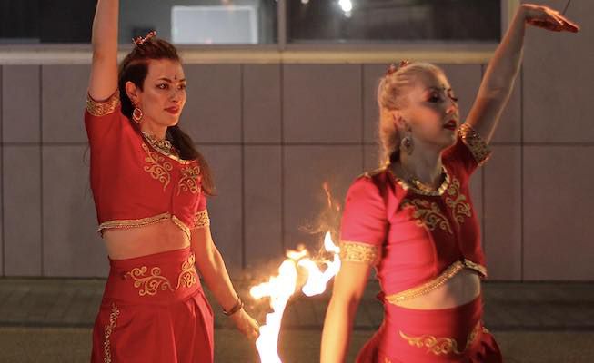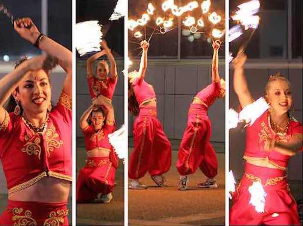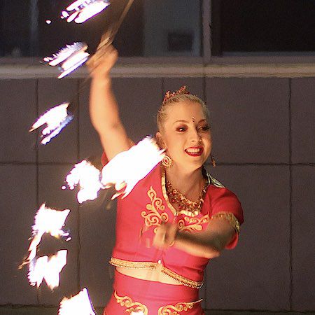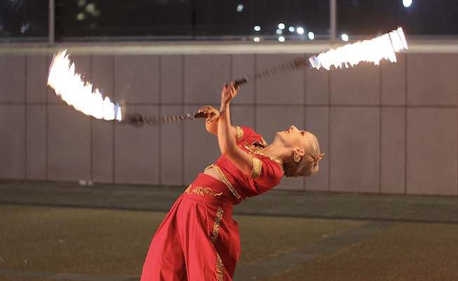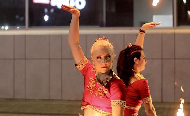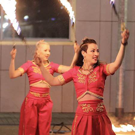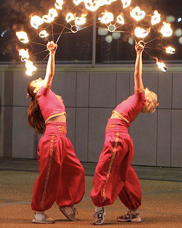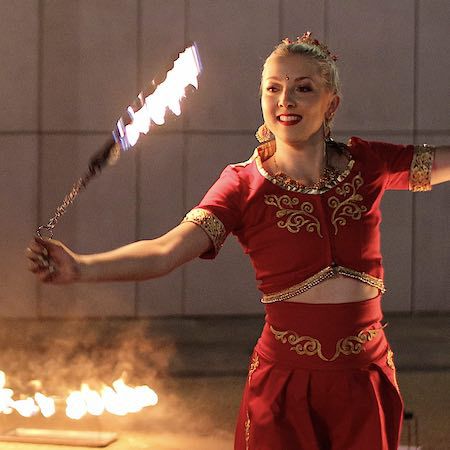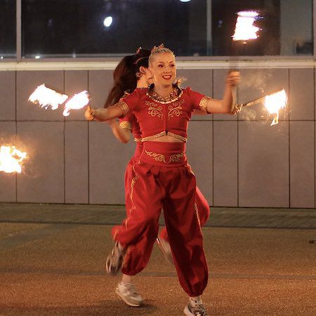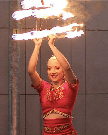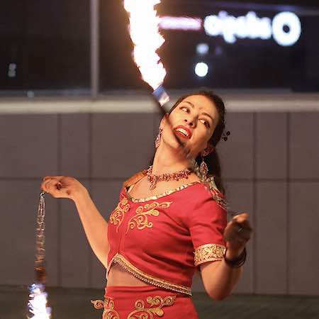 Este espectáculo de fuego con temática de Bollywood presenta trajes vibrantes, coreografías enérgicas y una variedad de cautivadores accesorios de fuego.