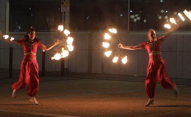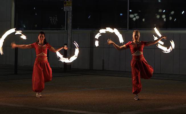 Además de un espectáculo de fuego de alta energía, estos artistas también pueden ofrecer opciones de vestuario LED y píxel para actuaciones itinerantes.