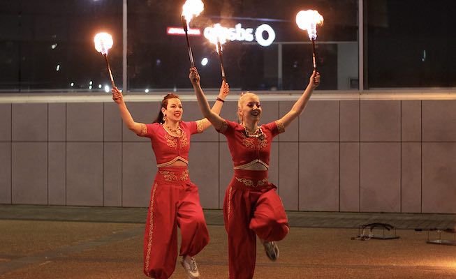 Este dúo de fuego ofrece una actuación electrizante ambientada en música popular india, fusionando baile dinámico, alta energía y llamas fascinantes.