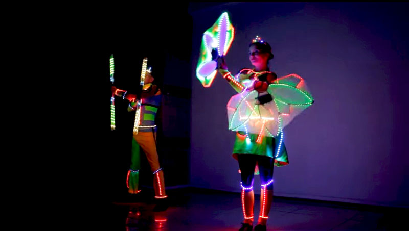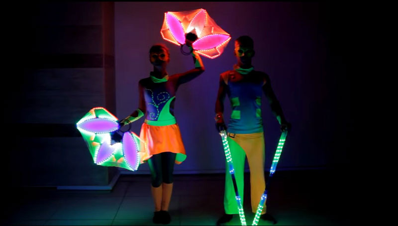 Este espectáculo de baile LED está garantizado para ser el punto culminante de su evento. Una exhibición visualmente cautivadora de color y luz, este acto puede adaptarse completamente a las necesidades del cliente. Las coreografías de nuestros bailarines de luz LED son personalizables: están dispuestos a crear nuevas rutinas con la música solicitada y combinar todos los diferentes elementos y accesorios que utilizan para crear una variedad de efectos visuales. Altamente capacitados, nuestros artistas tienen todo lo necesario para sorprender al público.