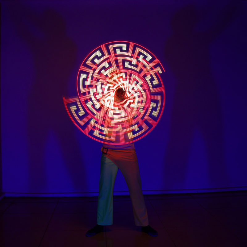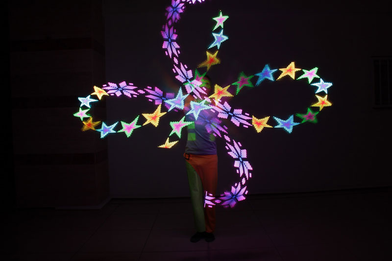 Sus actuaciones de baile de luz no solo son visualmente impresionantes, sino también una demostración de la creatividad ilimitada y la técnica impecable de estos artistas. También talentosos giradores de poi LED, sus palos de poi pueden ser preprogramados para mostrar diferentes colores e imágenes.