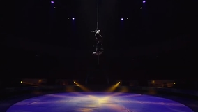 Una actuación visualmente impresionante que combina técnicas aéreas y de circo con movimientos elegantes y fluidos.