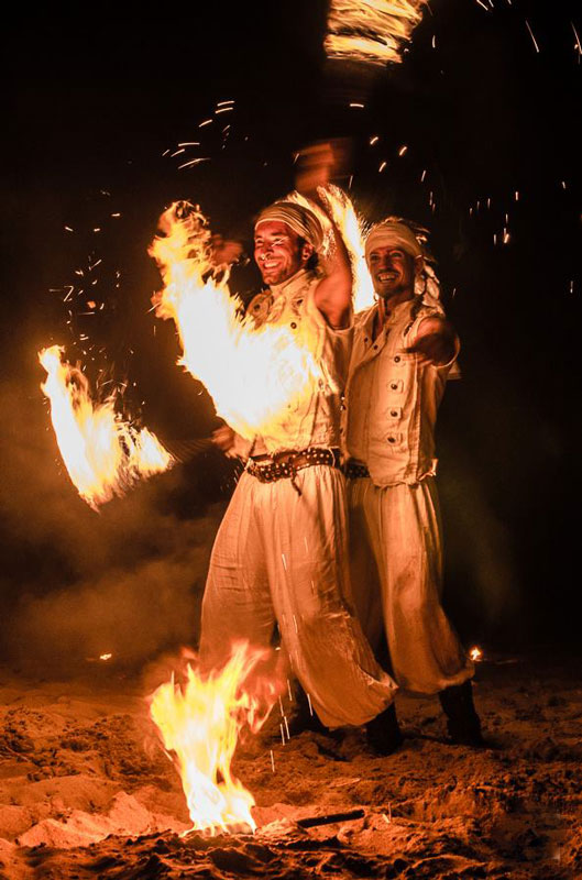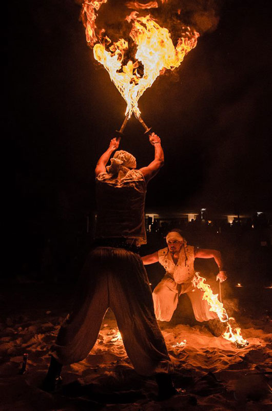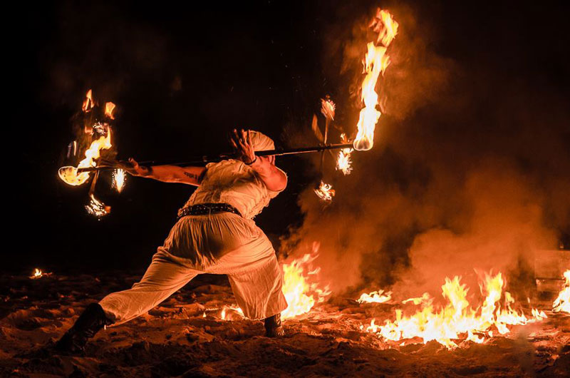 Los espectáculos de danza con fuego son especialmente adecuados para celebraciones callejeras, bodas y fiestas privadas. Nuestros artistas masculinos del fuego también actúan en una variedad de eventos, incluyendo festivales y ferias, eventos corporativos y ceremonias, por nombrar algunos. También les encanta actuar en la playa para iluminar la oscuridad en fiestas nocturnas.