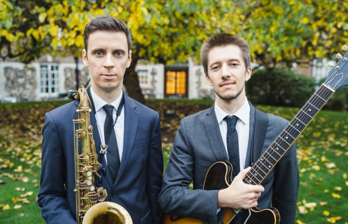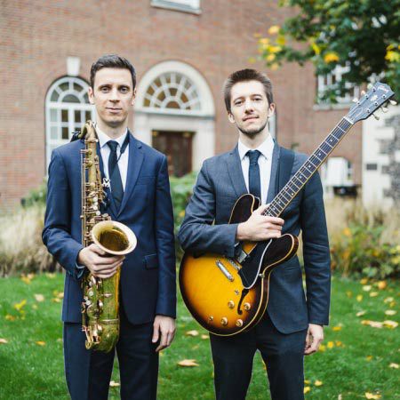 Nuestro dúo de jazz está compuesto por un saxofonista y un guitarrista, pero puede expandirse a un trío, cuarteto o quinteto con piano, bajo, batería o voces.