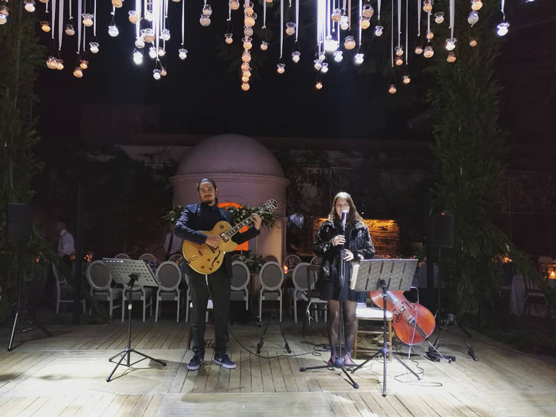 Este dúo de cuerdas para eventos ha diseñado un repertorio amplio y diverso que incluye los mejores éxitos internacionales y baladas de todos los tiempos. Capaz de interpretar tanto en español como en inglés, la cantante del dúo puede deleitar a los oyentes con versiones de jazz de sus canciones favoritas.