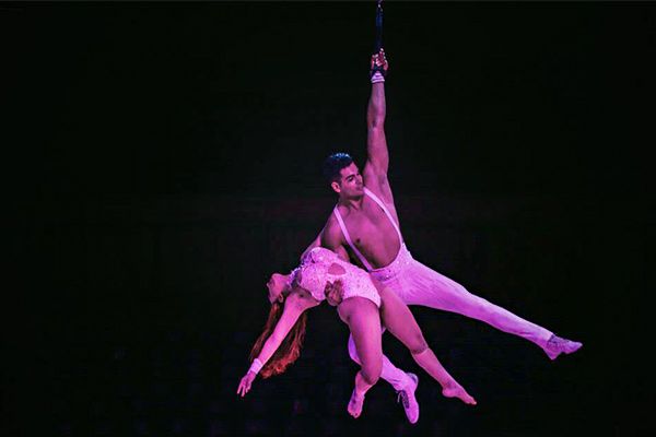 Multi-talentoso, nuestro dúo aéreo también puede actuar como solistas y realizar espectáculos en tierra, incluyendo adagio, patinaje sobre ruedas y burlesque.