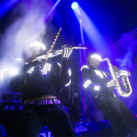 Capaces de personalizar sus espectáculos para adaptarse a tu evento específico, nuestro dúo también puede ser contratado como un acto de LED, con un saxofón y un arco de violín LED. Perfecto para cualquier fiesta nocturna vibrante, esta opción de entretenimiento es extremadamente popular entre clientes corporativos de prestigio y VIP. También disponible junto a un DJ de primera categoría, nuestros músicos y DJ se complementan entre sí con sus actuaciones unificadas.
