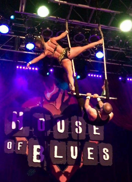 Un acto maravilloso que combate problemas logísticos en cuanto a la instalación, nuestro trapecio estático y estructura móvil solo requieren un espacio de 18 pies de ancho por 22 pies de largo y aproximadamente 18 pies de altura. Llevando el circo a ti, nuestros acróbatas son perfectos para eventos corporativos, fiestas privadas, ocasiones temáticas de circo, festivales y cualquier evento que desee un acto circense atmosférico y sumamente dinámico.