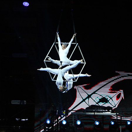 Esta impresionante actuación presenta una amplia variedad de artistas de circo altamente capacitados, como acróbatas aéreos, artistas de fuego, acróbatas ¡y mucho más!