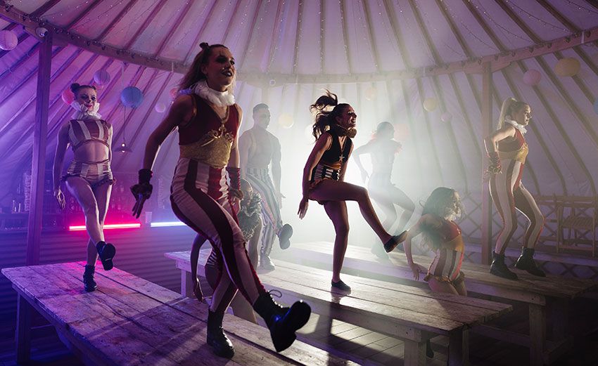 Este envolvente programa de espectáculos temáticos de circo retorcido ofrece actuaciones durante todo el evento. A su llegada, los invitados serán recibidos por nuestros artistas con impresionantes trajes de circo vintage, incluyendo artistas de fuego, zancudos, bailarines, acróbatas o un Hombre Fuerte tradicional.
