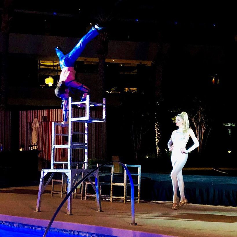Artista de circo polifacético con increíbles habilidades para hacer equilibrismo con sillas, con sede en Las Vegas.