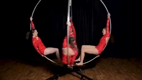 Estos acróbatas aéreos tienen una variedad de accesorios aéreos disponibles, desde telas y aros hasta elegantes opciones independientes para lugares sin punto de anclaje.