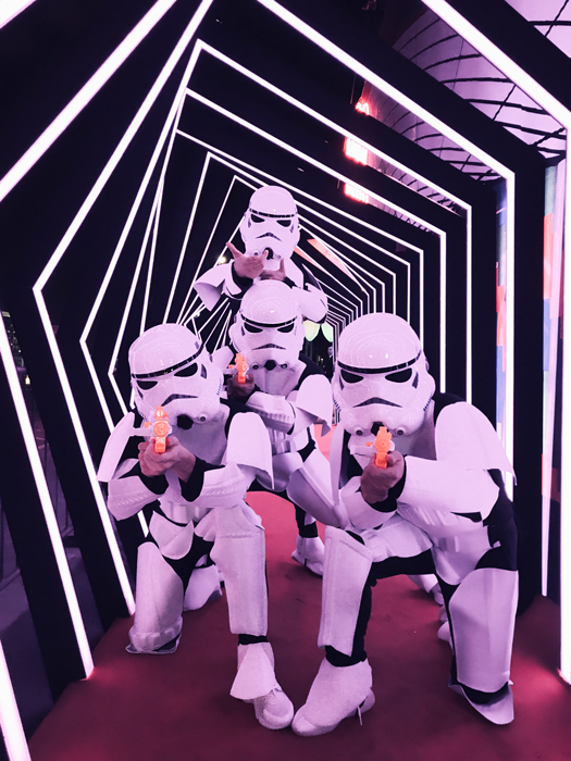 Estos bailarines adaptables han usado algunos trajes bastante interesantes en su tiempo y han creado rutinas especiales para combinar con el tema y los trajes. Los bailarines profesionales saben cómo dar un espectáculo sin importar en qué traje estén. Eventos anteriores han visto a los bailarines temáticos vestidos como los Vengadores, zombies, hombres espejo, fusión oriental, en trajes de LED y más. Si tienes un concepto y necesitas bailarines temáticos y rutinas específicas, podemos coordinar a estos chicos para ti.