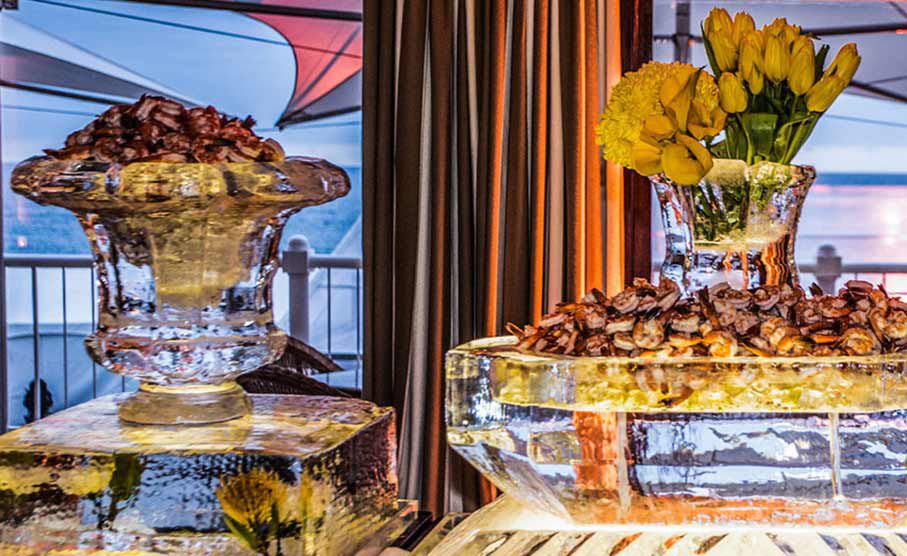 Nuestro escultor de hielo crea impresionantes esculturas de hielo en diferentes tamaños, así como barras de hielo y ice luges para bebidas con una gran variedad de temáticas