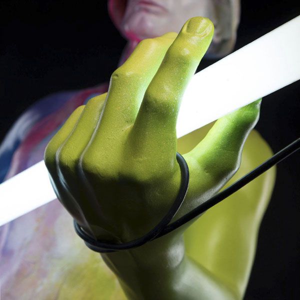 Nuestro artista con sede en Letonia le gusta trabajar con diferentes materiales al crear sus piezas, como resina de poliéster, fibra de vidrio y elementos de luz.
