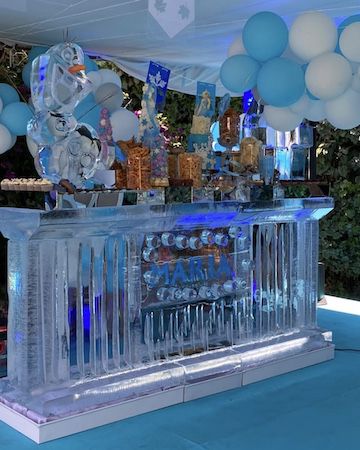 Ofrecen barras de hielo, toboganes para bebidas, cabinas de DJ en hielo, muebles tallados, estructuras con LED y réplicas como un coche de Fórmula 1 realista