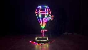 Crea un espectáculo impresionante con un artista que vuela dentro de un diamante LED luminoso, cautivando al público en cualquier evento de primera categoría