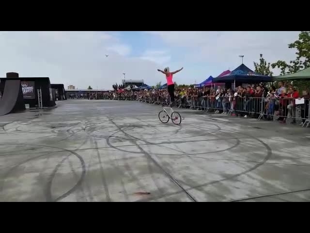Un artista que nunca deja de impresionar, esta acróbata en bicicleta siempre mantiene al público cautivado con sus rutinas de bicicleta perfectamente ejecutadas. ¡Una exhibición de equilibrio sobrehumano, esta increíble artista deportiva realiza acrobacias destacadas en su bicicleta!