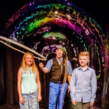 una actuación dinámica con la combinación perfecta de narración, arte con burbujas y magia!
