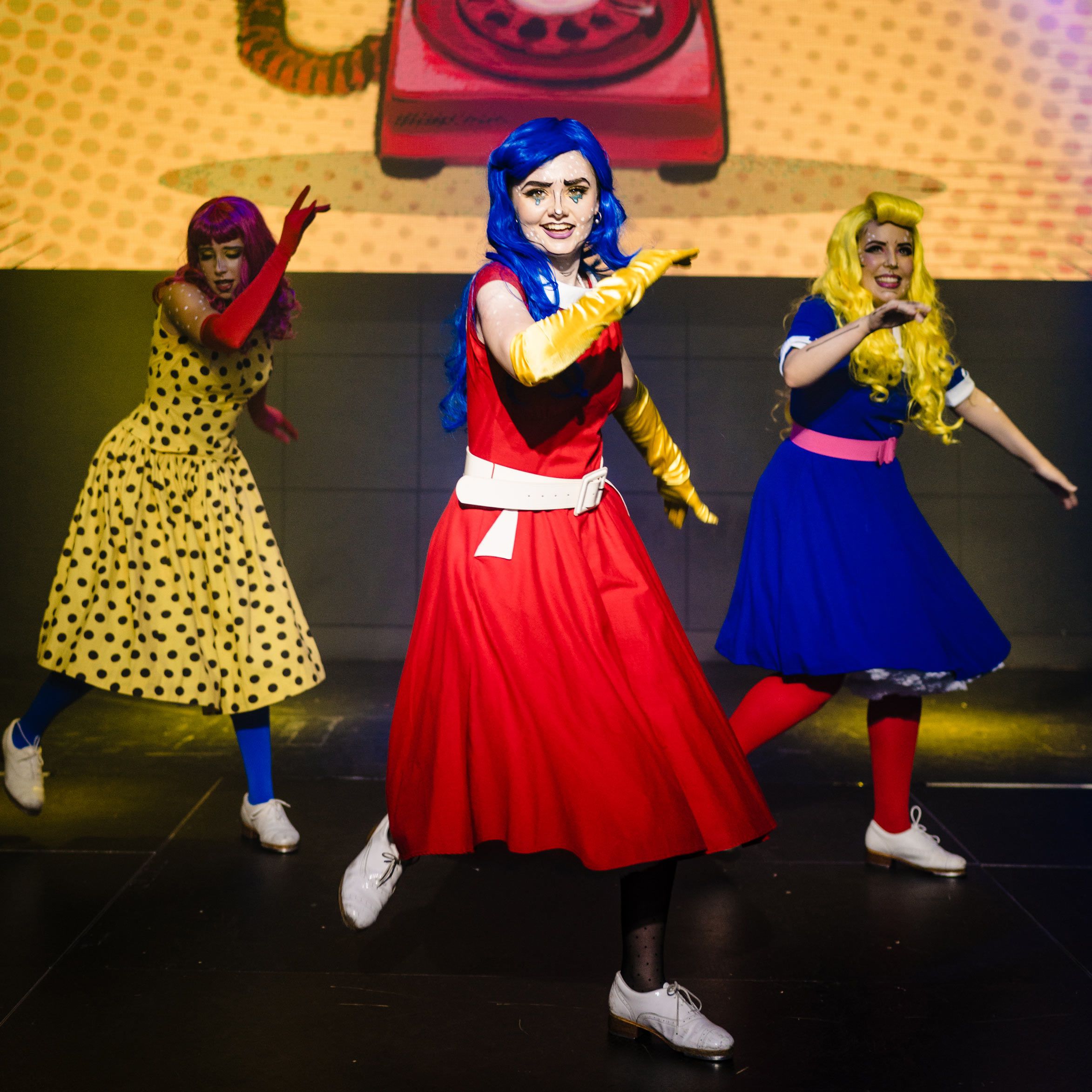 El espectáculo en sí rebosa de vocalistas y bailarines excepcionales, cada uno adornado con maquillaje profesionalmente estilizado que refleja los elementos gráficos y atrevidos del Arte Pop. Cada detalle está diseñado para deslumbrar, desde los trajes brillantes y llamativos hasta la puesta en escena imaginativa que transforma el escenario en un lienzo de creatividad.