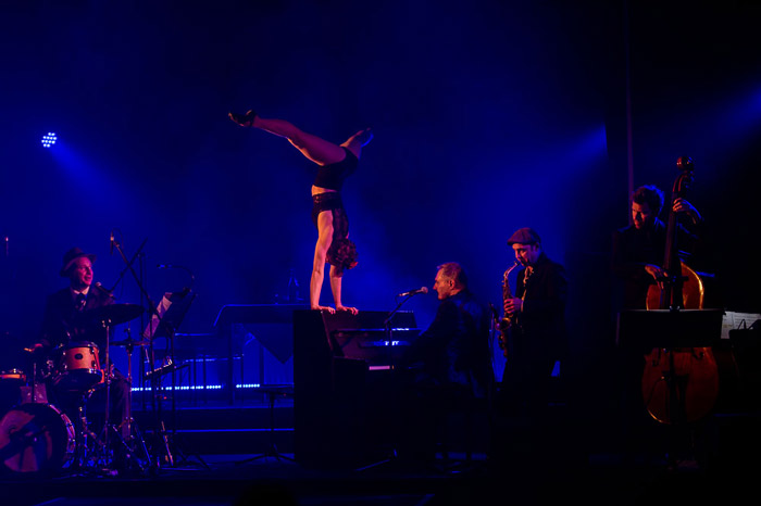El swing, el shuffle, el jazz y los actos clásicos de circo se fusionan para crear una fusión lúdica y bien orquestada, que es un festín para los oídos y los ojos.