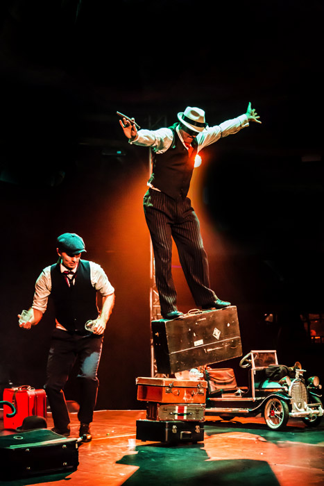 Llegando en un coche vintage sorprendentemente pequeño, los gangsters de los años 1920 vienen vestidos con elegantes trajes a medida y proceden a ofrecer un acto de comedia con humor slapstick, trucos de circo y claqué. El espectáculo de comedia silenciosa no involucra ningún lenguaje hablado, pero está respaldado por una adecuada banda sonora de jazz vintage que dura toda la duración de la actuación.