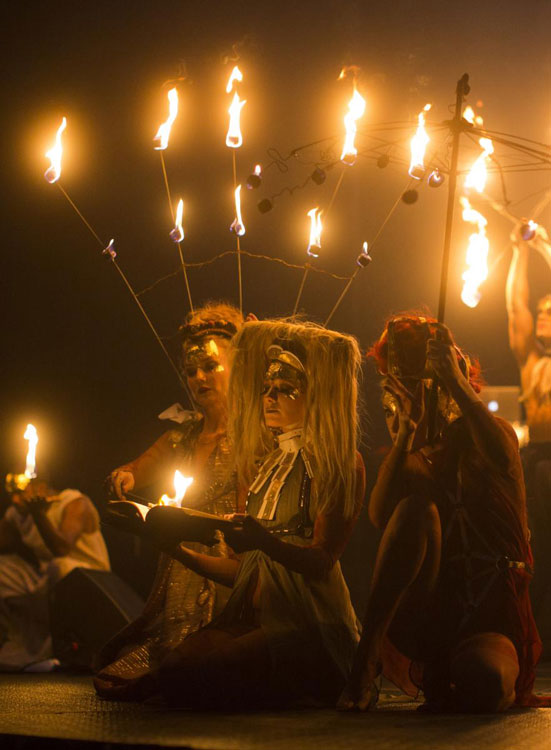 Encarnando una visión antigua y futurista del arte elevado, sus espectáculos tejen una nueva visión de la humanidad en un mundo entre el futuro y el pasado, mostrando criaturas y personajes del inframundo que cobran vida por la noche.