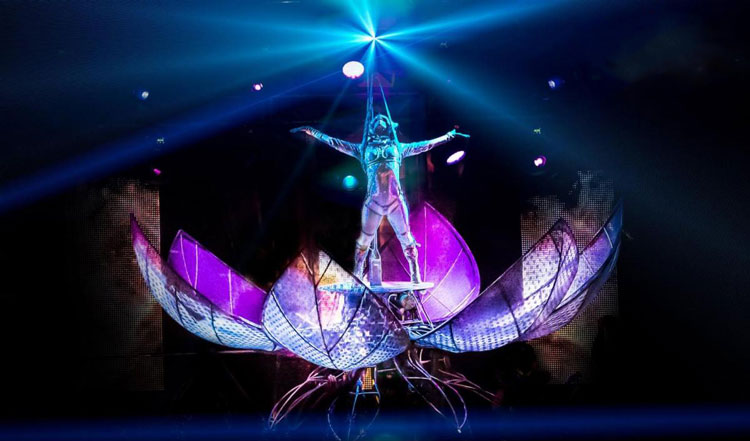 Con actuaciones fascinantes que incorporan música en vivo original con tecnología, visuales, bailarines, artistas aéreos, artistas de fuego, trajes de alta costura y conceptos vanguardistas, este destacado espectáculo de escenario es el entretenimiento definitivo para cualquier ocasión.