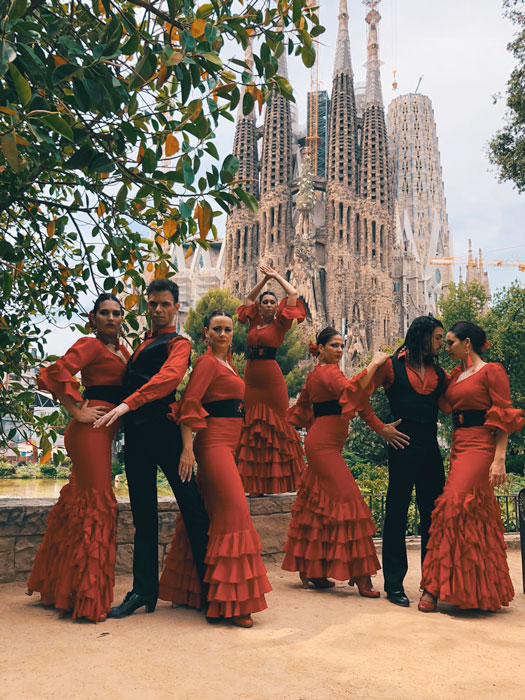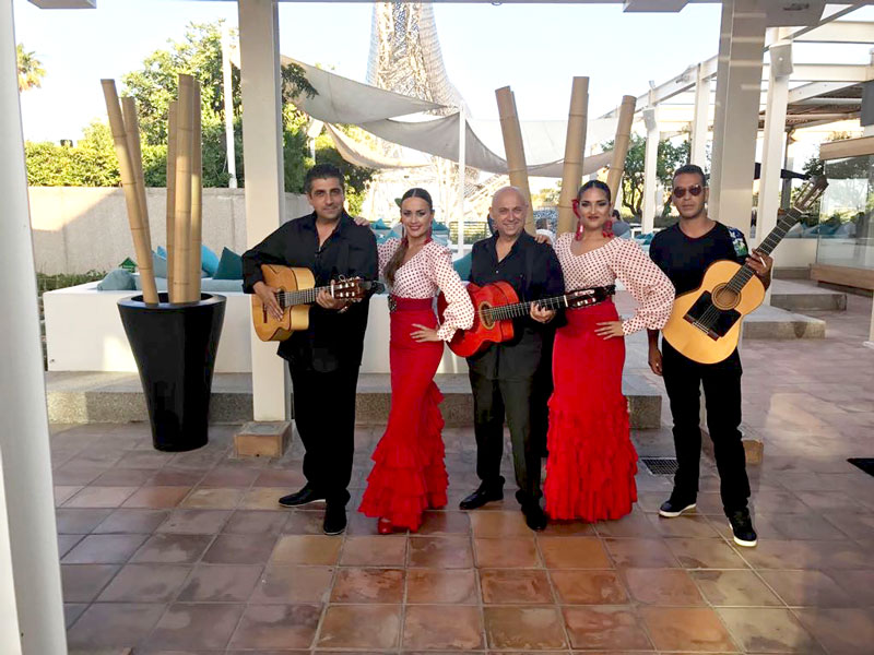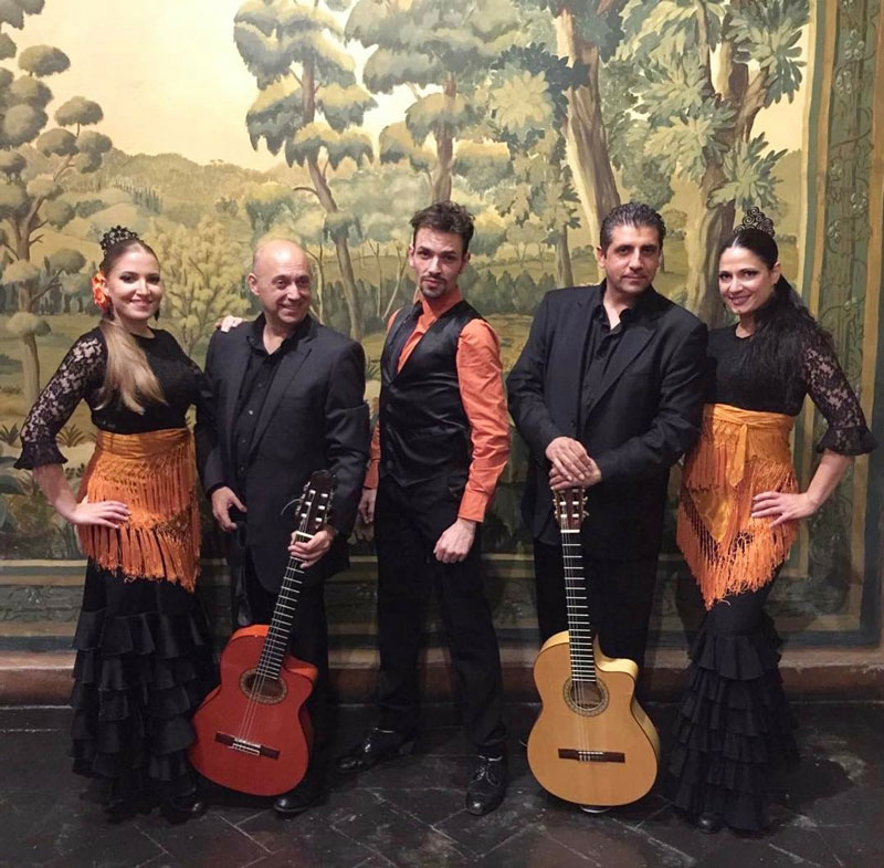Nuestro grupo de baile flamenco está compuesto tanto por bailarines experimentados masculinos como femeninos. Apasionados y creativos, pueden crear espectáculos de baile flamenco a medida especialmente para tu ocasión. Pueden realizar tanto espectáculos tradicionales como actuaciones que fusionan la tradición con sonidos y estilos modernos.
