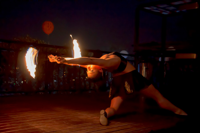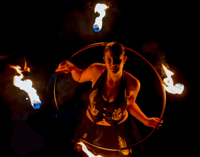 El espectáculo de fuego es un entretenimiento absolutamente hipnotizante para una amplia gama de eventos. Disponible como un espectáculo en el escenario, una actuación itinerante o un saludo, las posibilidades son infinitas. Deje atónitos a sus invitados con la actuación itinerante en una cena. Aumente la temperatura de una función corporativa con la actuación de saludo. O haga que los espectadores se pongan calientes con el fascinante espectáculo de fuego.