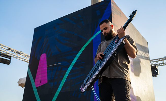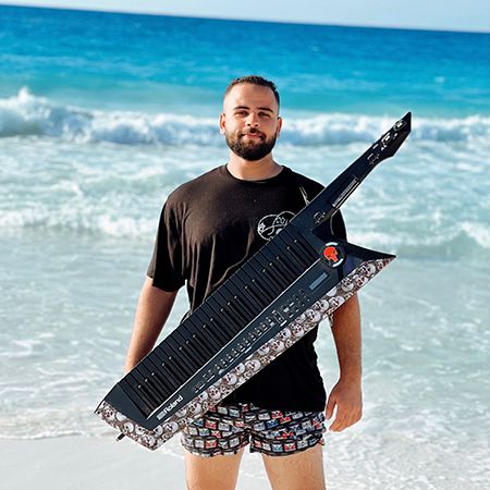 Combinando la potencia de un teclado con la movilidad de una guitarra, este solista tiene la libertad de tocar donde quiera para conectar con el público en todo el mundo