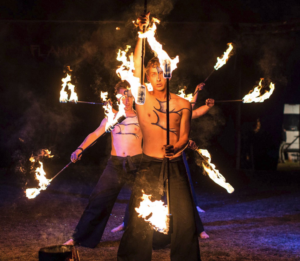 Puedes elegir un espectáculo de fuego, un espectáculo de luz UV o una combinación de ambos.