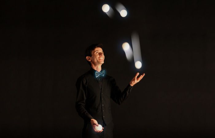 Este cómico malabarista de Londres deleitará a audiencia de todas las edades con su hilarante espectáculo en el escenario. Malabareando todo tipo de objetos, desde utensilios de cocina hasta equipos deportivos, este adorable artista ofrece actuaciones memorables con mucha interacción y participación del público.