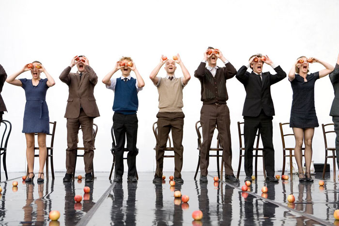 Incorporando malabares con manzanas, actuación profesional y coreografía cautivadora, nuestro espectáculo de malabares incluye una banda sonora de canciones famosas, desde Tammy Wynette hasta Bach. Actuando en total unión, el público se sumerge en los mundos de personajes que intentan desesperadamente mantener una fachada respetable mientras se desmoronan por dentro.