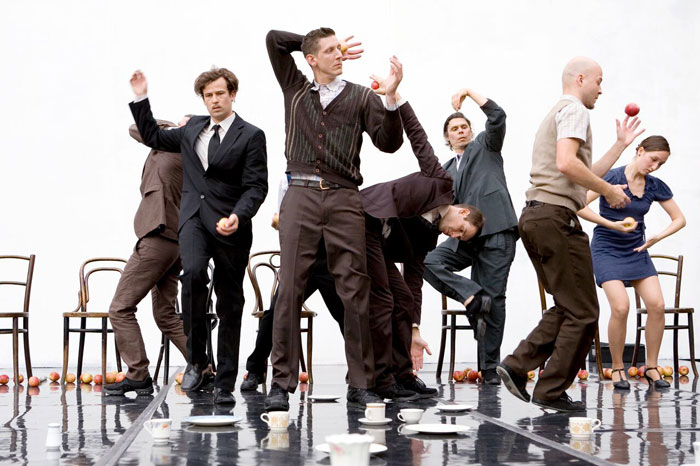 Con 9 malabaristas, 80 manzanas y 4 juegos de vajilla, este poderoso y divertido espectáculo de malabares explora las tensas relaciones entre un grupo de hombres y mujeres durante el té de la tarde. Utilizando el símbolo de la "fruta prohibida", el público experimenta una fiesta de té como nunca antes la ha visto.