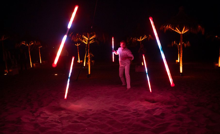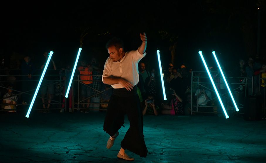 Esta experiencia visual única combina movimiento, tecnología y malabares con barras LED programables para crear una hipnotizante sinfonía visual