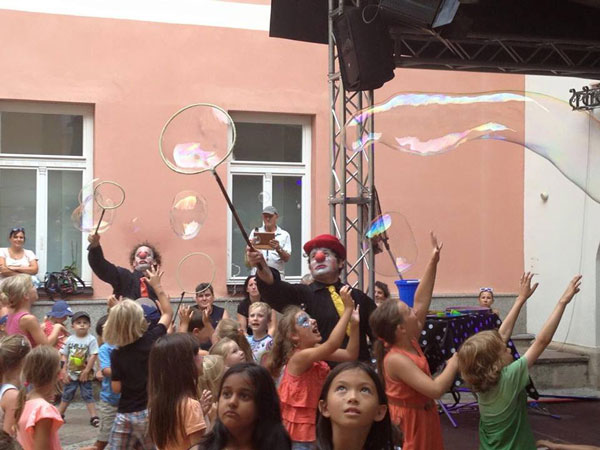 Entretenimiento de primera categoría para niños, nuestro increíble espectáculo de payasos y burbujas incluso cuenta con un impresionante final con luz negra, garantizando un factor sorpresa instantáneo para su ocasión. Ideal para días familiares, festivales, eventos temáticos, fiestas privadas, funciones corporativas, eventos infantiles y más, nuestro espectáculo de teatro para niños está disponible para reservar en eventos en Venecia y en toda Italia.